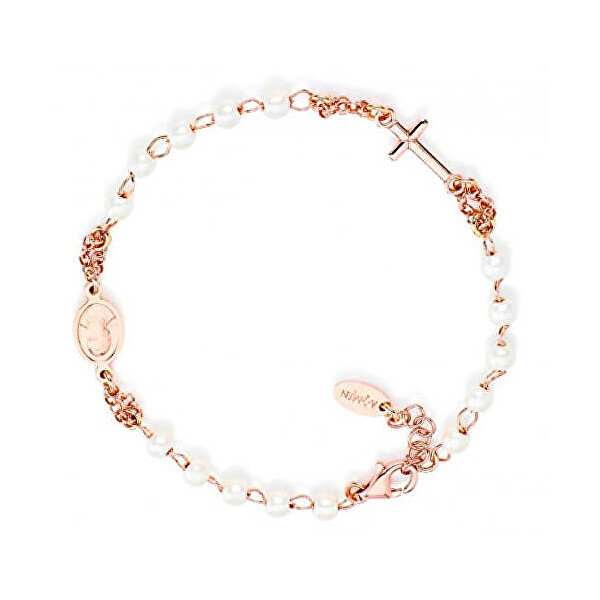 Amen originální pozlacený náramek s perličkami Rosary BRORB3 + 2 měsíce na vrácení zboží