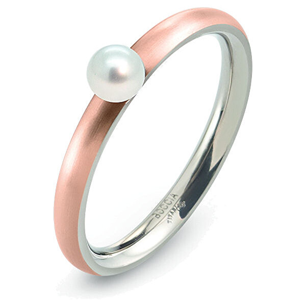 Boccia Titanium Růžově pozlacený titanový prsten s perličkou 0145-03 55 mm