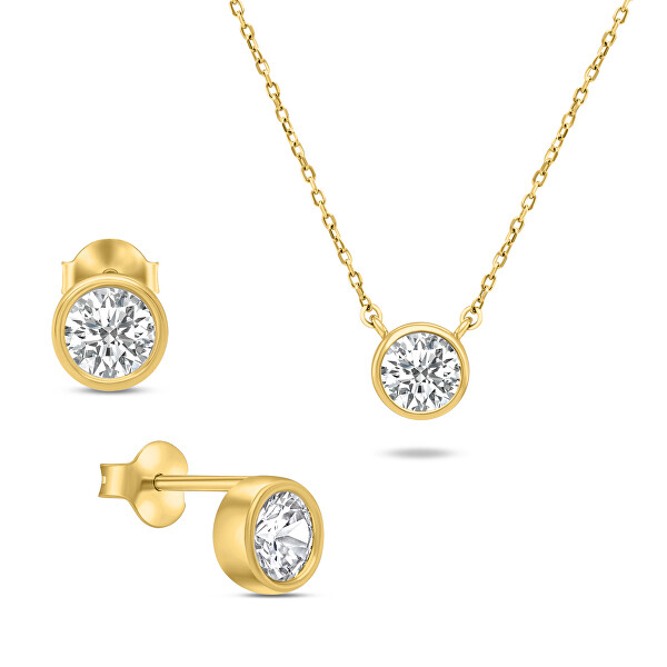 Brilio Silver Moderní pozlacený set šperků se zirkony SET220Y (náušnice, náhrdelník) + 2 měsíce na vrácení zboží