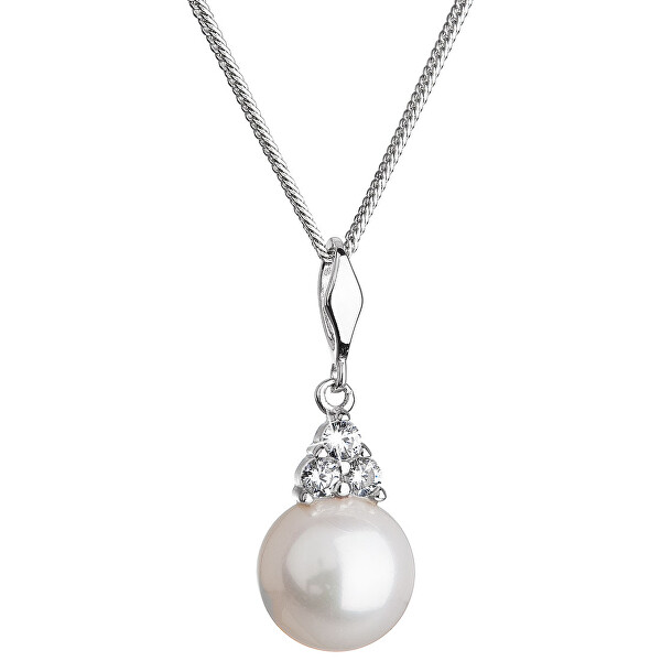 Evolution Group Stříbrný náhrdelník s pravou říční perlou a zirkony 22033.1 (řetízek, přívěsek)