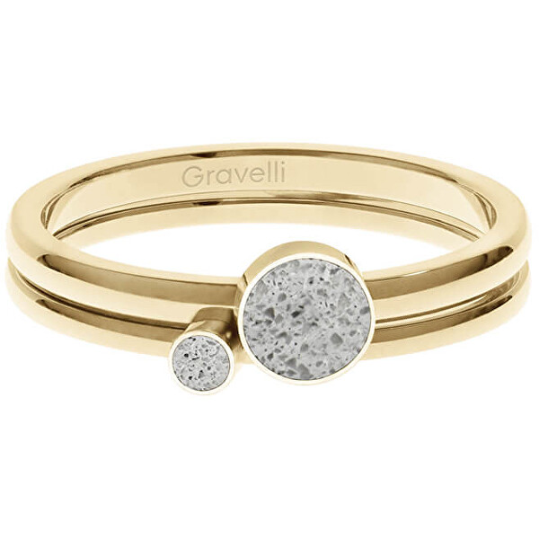 Gravelli Sada ocelových prstenů s betonem Double Dot zlatá/šedá GJRWYGG108 53 mm