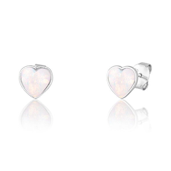 JVD Jemné stříbrné náušnice se syntetickými opály Srdíčka SVLE1013XF6O100