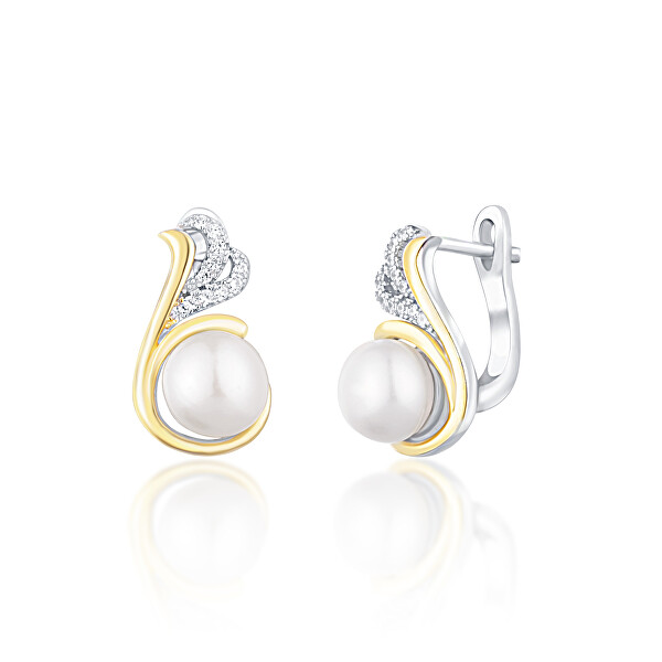 JwL Luxury Pearls Stříbrné bicolor náušnice s pravými perlami a zirkony JL0720