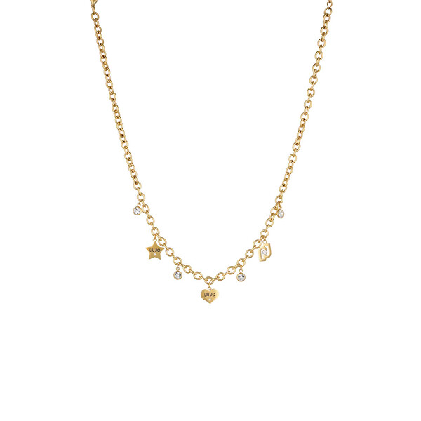 Liu.Jo Stylový pozlacený náhrdelník s přívěsky Brilliant LJ1649