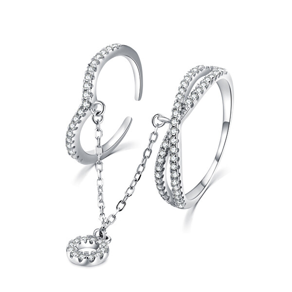 MOISS Luxusní dvojitý prsten ze stříbra se zirkony R00022 56 mm