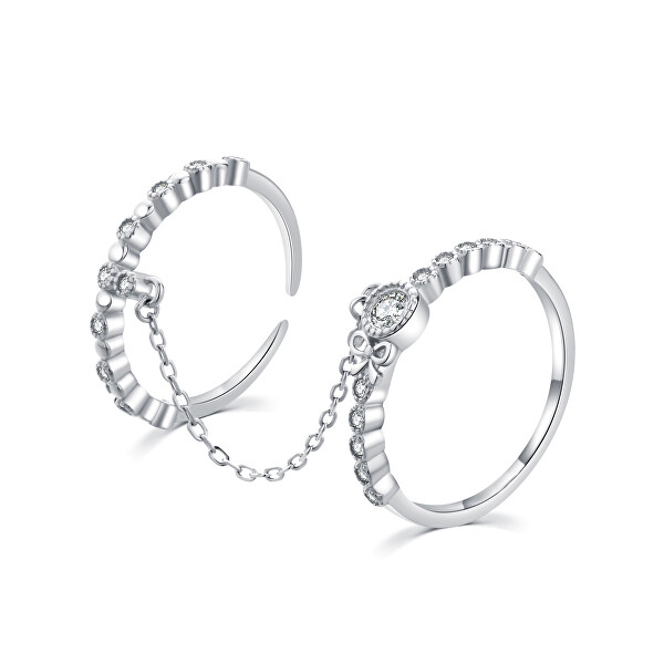 MOISS Půvabný dvojitý prsten ze stříbra se zirkony R00022 52 mm