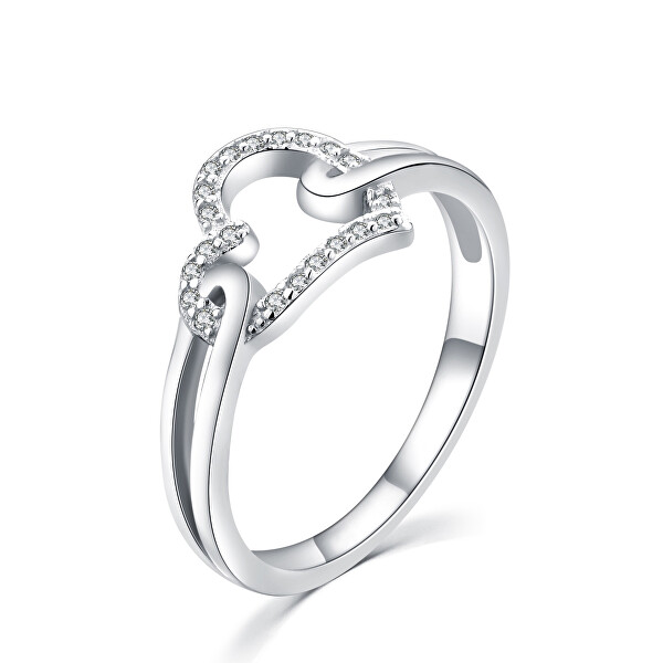 MOISS Romantický stříbrný prsten se zirkony Srdce R000210 57 mm