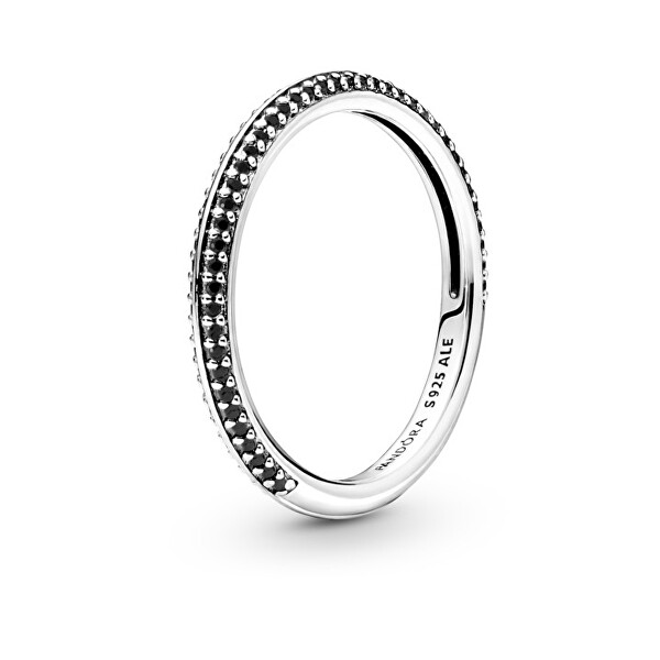 Pandora minimalistický stříbrný prsten s černými krystaly Me 199679C02 50 mm + 2 měsíce na vrácení zboží