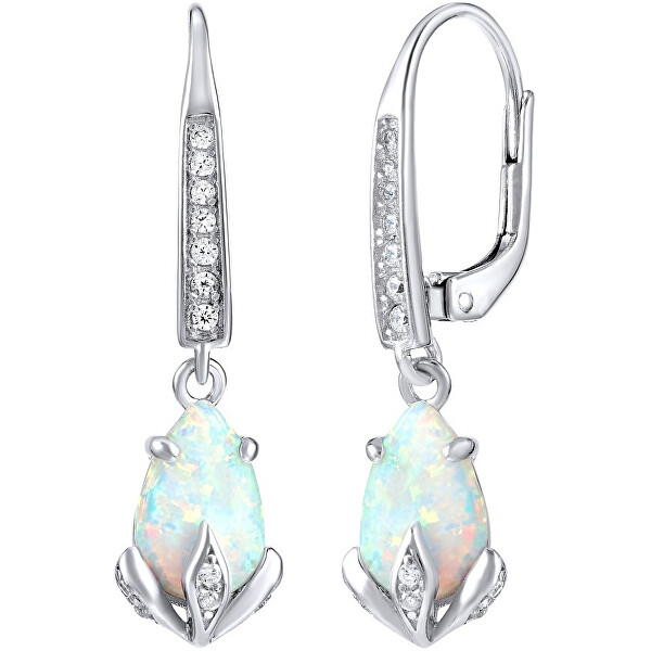 Silvego Stříbrné náušnice s bílým syntetickým opálem JJJE1267W