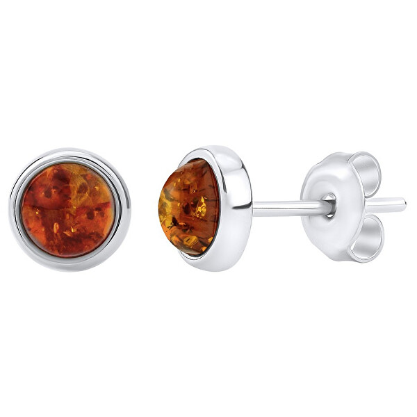Silvego Stříbrné náušnice s přírodním Jantarem JAAJE330