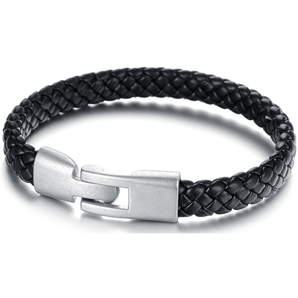 Troli Černý pánský náramek z proplétané kůže Leather + 2 měsíce na vrácení zboží