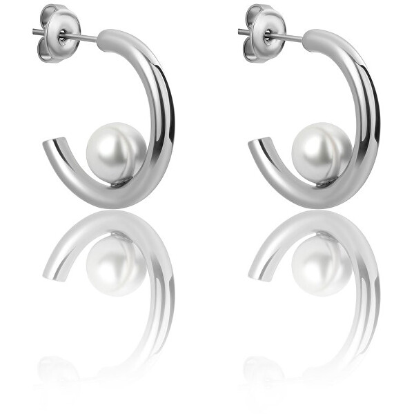 Victoria Walls náušnice kroužky s perličkou VE1101S + 2 měsíce na vrácení zboží